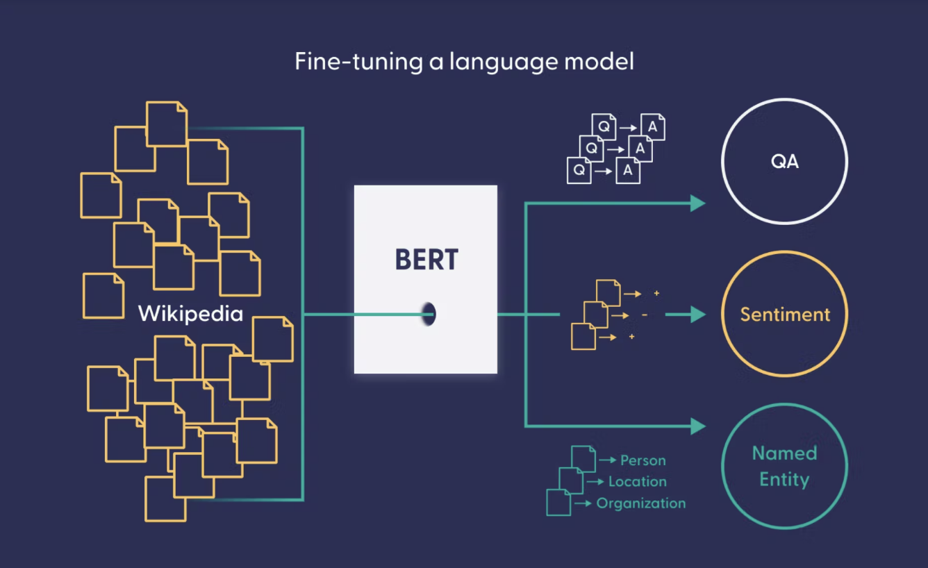 许多任务都受益于语言直觉的表示。此类任务的示例包括 情感分析、命名实体识别、问答等等。将通用语言模型适应此类任务称为 微调。